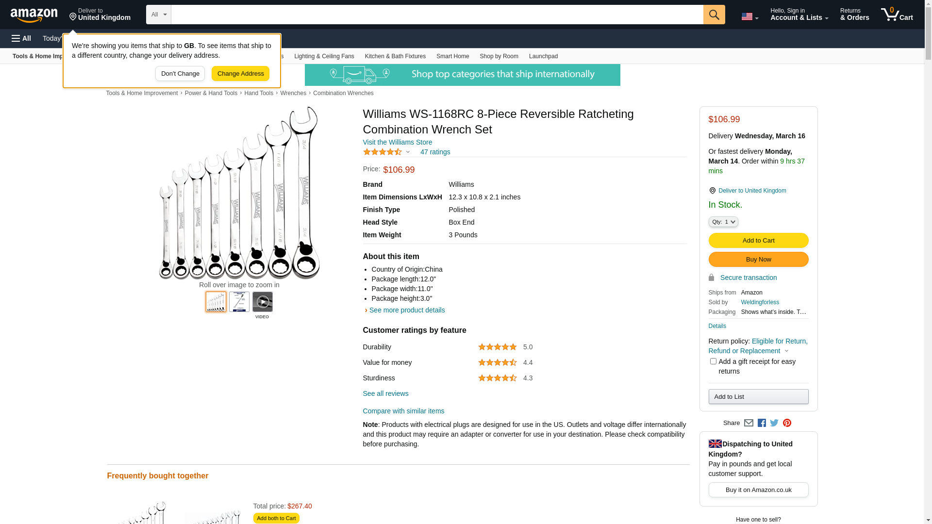 Williams WS-1168RC 8-Piece Reversible Ratcheting Combination Wrench Set