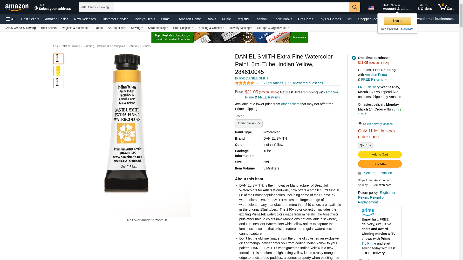 Daniel Smith Extra Fine Watercolor Paint, 5ml Tube, Indian Yellow, 284610045