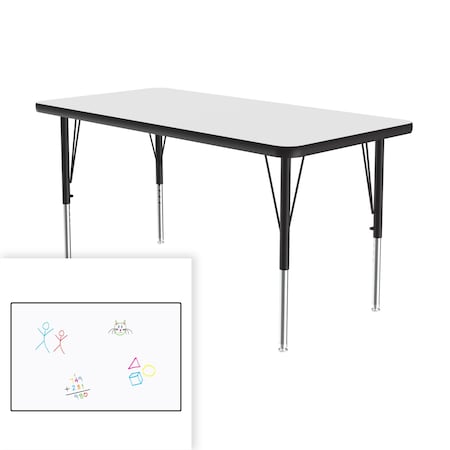 Correll 24"x60" Rectangular, Classroom Dry Erase/Markerboard Top, Activity Table, Adjustable Height, White Durable High Pressure Laminate, School Furniture