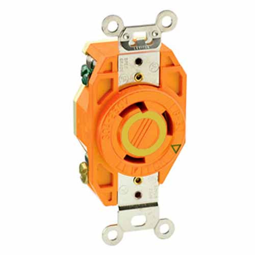 Leviton 2610-IG - 30 Amp - 125 Volt - NEMA L5-30R - Flush Mtg Locking Receptacle - Industrial Grade - Orange