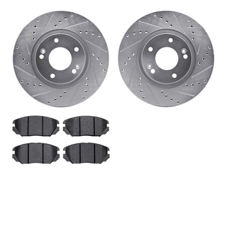 Dynamic Friction Company Front Brake Rotors-Drilled and Slotted-Silver with 5000 Advanced Brake Pads 7502-03027