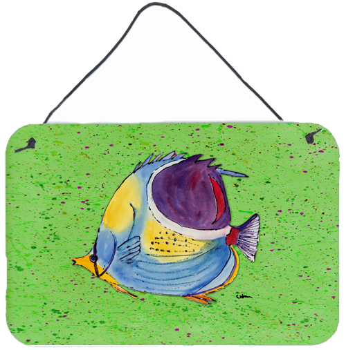 Carolines Treasures 8574DS812 8 x 12 in. Tropical Fish on Green Aluminium Metal Wall or Door Hanging Print