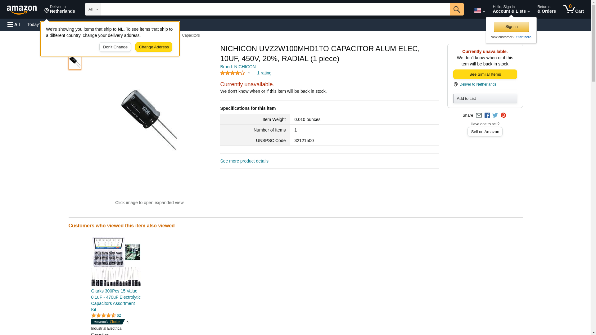 NICHICON - UVZ2W100MHD1TO - CAPACITOR ALUM ELEC; 10UF; 450V; 20%; RADIAL