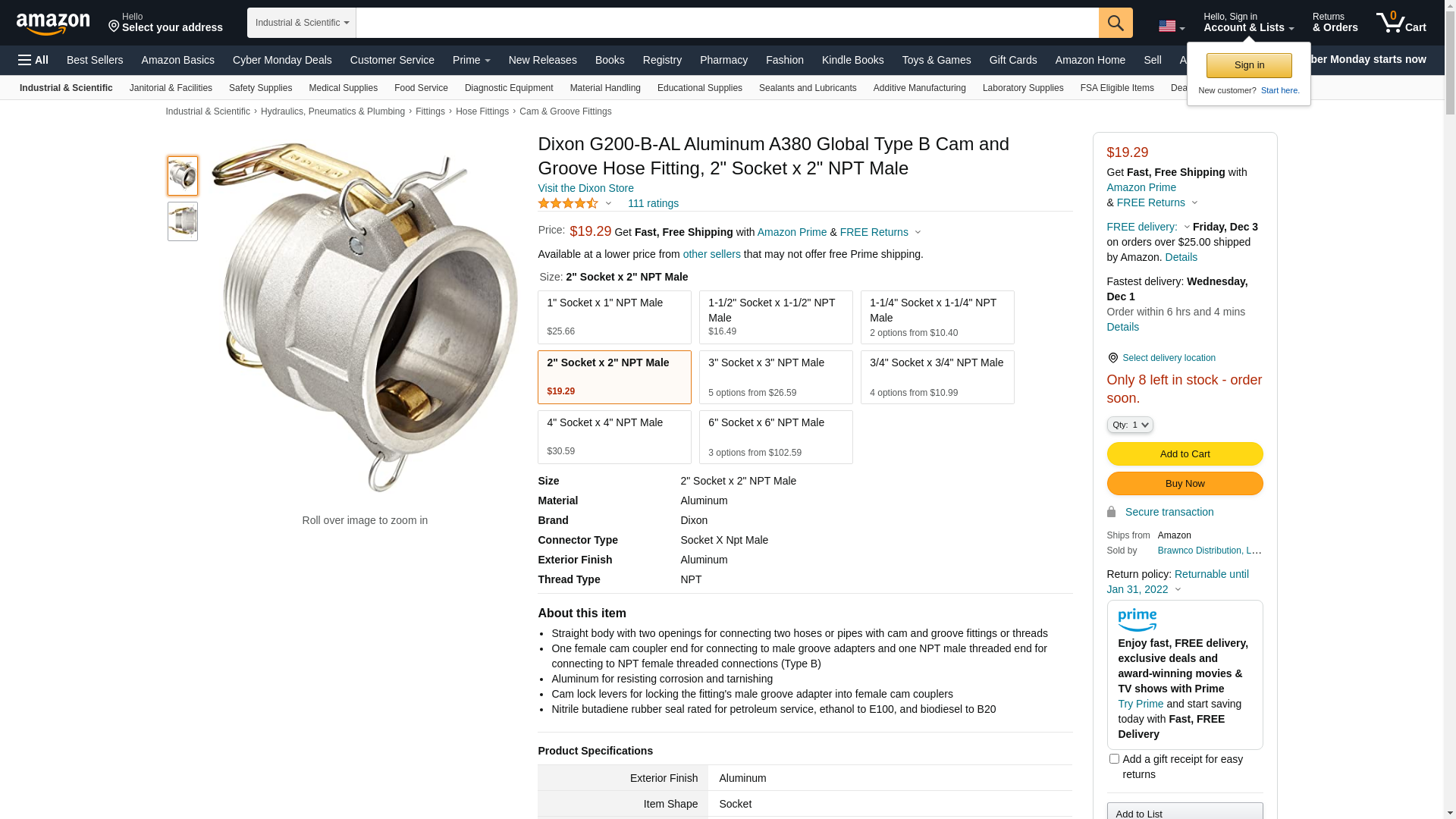 | Airline Hydraulics | DIXON G200-B-AL | 1 | 1 | 1 @ $17.60 | |