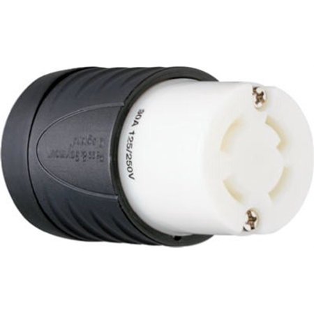 Legrand Pass & Seymour L1430CCCV3 Turnlok Industrial Spec Grade Locking Connector, 30 Amp 125/250V, NEMA L14-30R, Black/White (1 Count)
