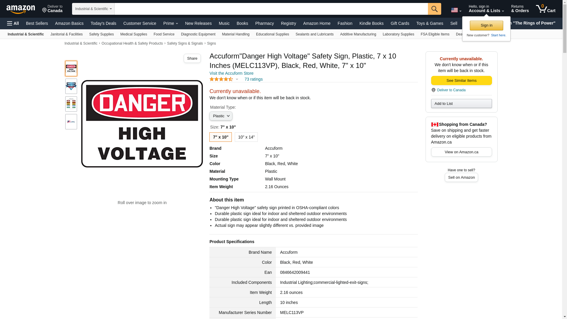 | Feature | Accuform MELC113VP Electrical High Voltage & Hazard DANGER DANGER HIGH VOLTAGE 7" x 10" Plastic |