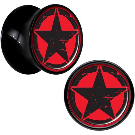 Body Candy Black Acrylic Black Red Distressed Star Saddle Plug Set of 2 1/2"If you love military stars then this pair of plugs is right for you! Made with lightweight black acrylic, these 12mm ear gauges are made with a saddle style design for comfortable wear and are sold as a set of two for you.