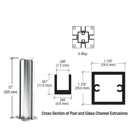 CRL D990BA124W Brite Anodized 12" 4-Way Design Series Partition Post