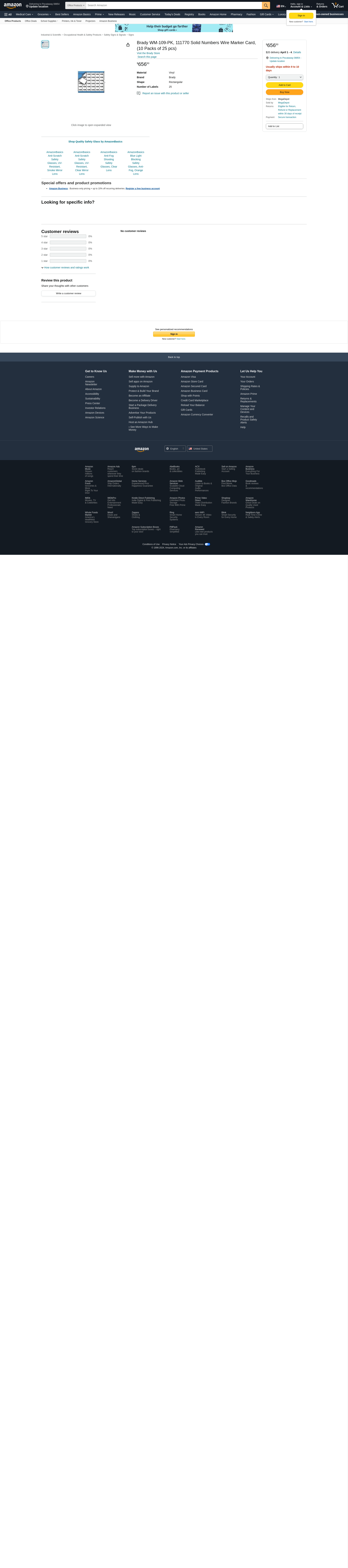 Brady Wm-109-Pk / Pack Of 25 Cards - WM-109-PK