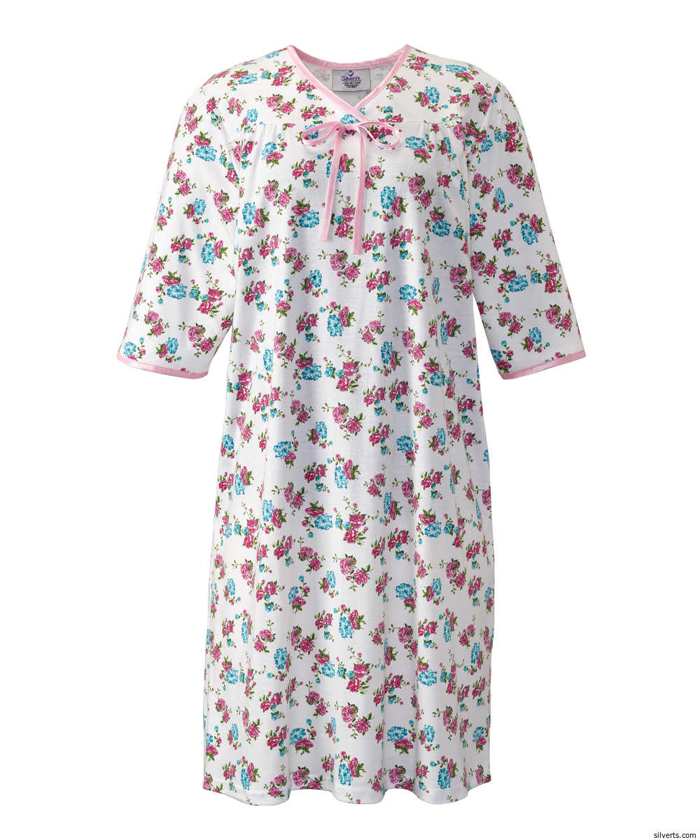 Silverts 260003204 Womens Pretty Soft Cotton Adaptive Designer Hospital Gown, Pink Rose - Extra Large