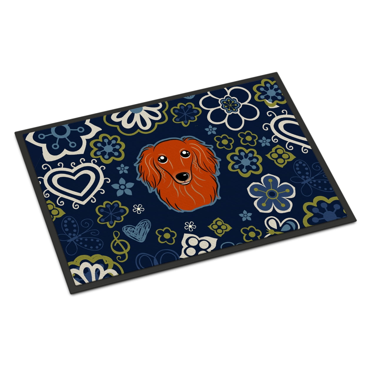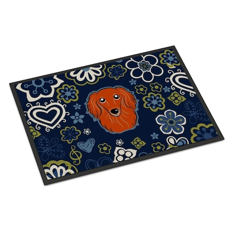 Caroline's Treasures BB5065MAT Blue Flowers Longhair Red Dachshund Door Mat, Indoor Rug or Outdoor Welcome Mat 18x27 Doormat, 27" L x 18" W, Multicolor