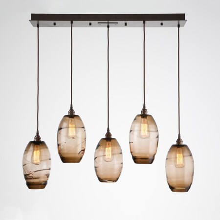Ellisse Linear Chandelier, 5-Light, Flat Bronze, Optic Clear Shade, 38.5"W (PLB0035-05-FB-OC-C01-E2