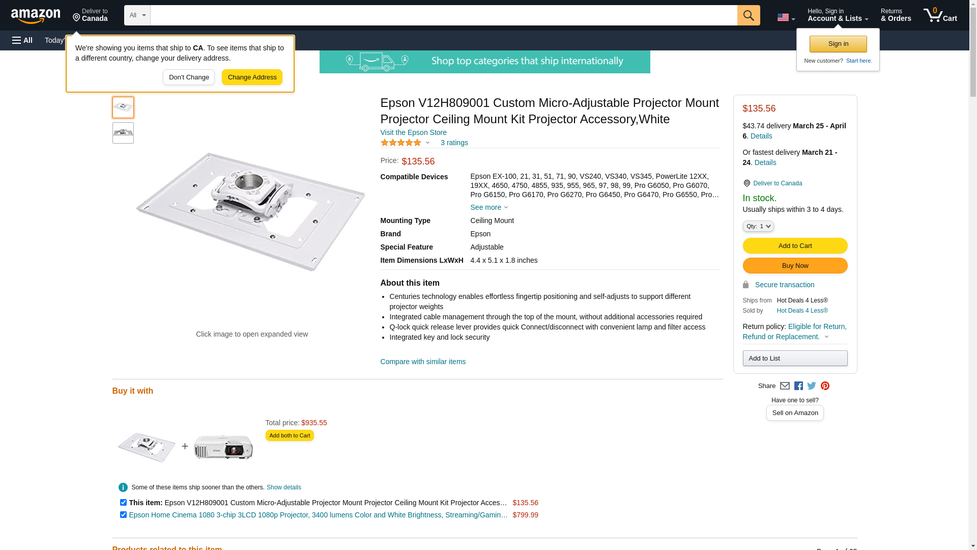 Epson V12H809001 Custom Micro-Adjustable Projector Mount Projector Ceiling Mount Kit Projector Accessory,White