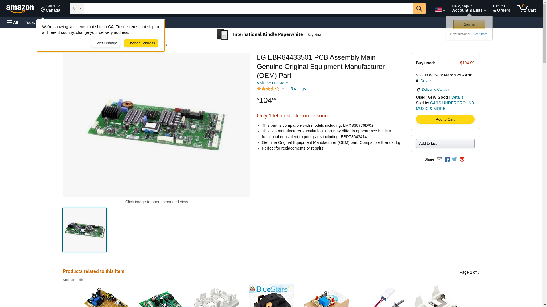 Genuine Original Equipment Manufacturer (OEM) parts! Lg EBR84433501 PCB ASSEMBLY,MAIN