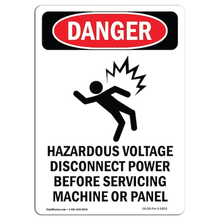 OSHA Danger Sign, Hazardous Voltage, 18in X 12in Decal