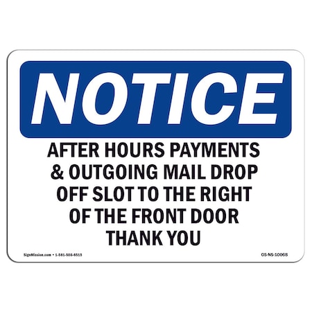 OSHA Notice Sign, After Hours Payment & Outgoing Mail Drop, 24in X 18in Aluminum