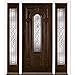 Feather River Doors Lakewood Center Arch with Full Lite Sidelites is a Mahogany Woodgrain Fiberglass Door Prefinished in Chestnut with Patina Caming. The Lakewood collection is a true beauty with clear bevel center design surrounded with glue chip glass with a clear bevel and granite glass border. The mahogany woodgrain texture is patterned off a true wood door design to give the door the warmth and feel of wood with the long lasting benefits of fiberglass. This door is True elegance. This door has all the long lasting benefits associated with fiberglass doors, a great look, along with a load of features and benefits usually viewed as upgrades with other doors plus energy efficient and energy star qualified. Door Specification: 36 in. x 80 in. prehung door with two 12 in. sidelites, 4-9/16 in. primed jamb, Left-Hand inswing, fits rough opening of 64-1/4 in. x 82-1/8 in.