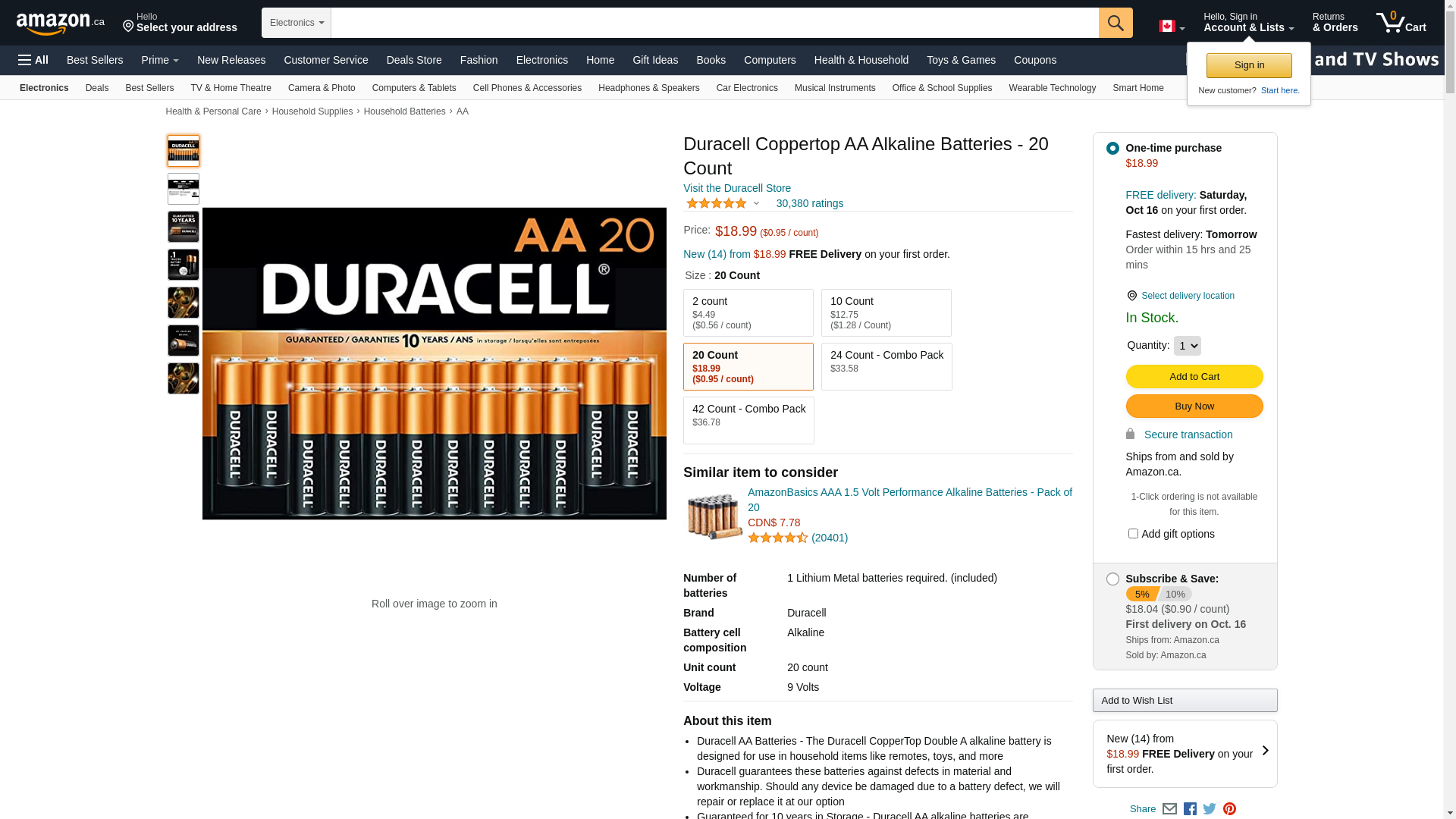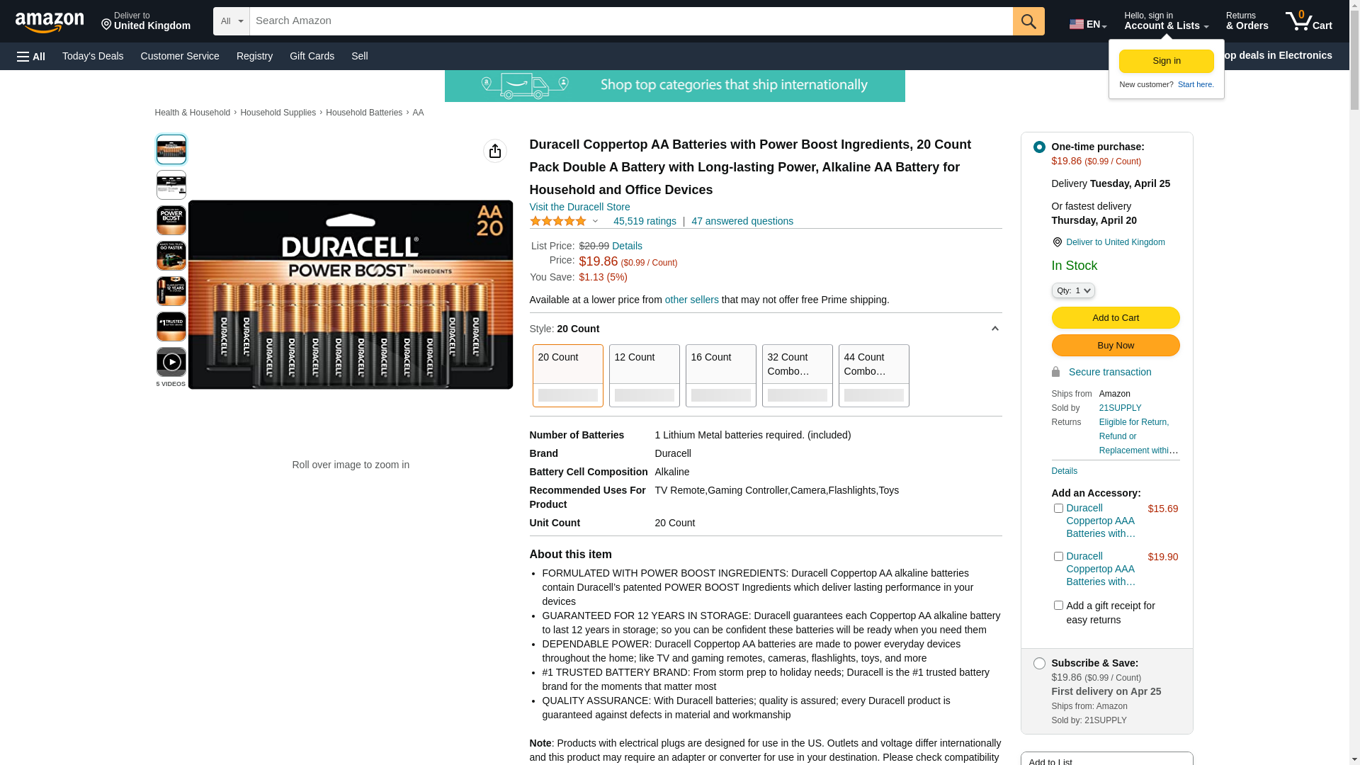 Duracell Coppertop AA Batteries (20 AA Batteries)