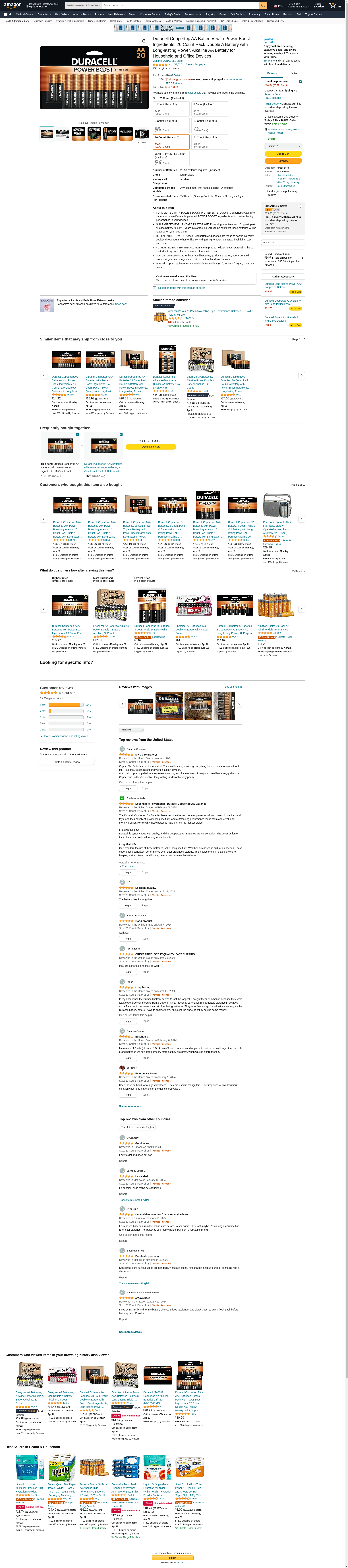 Duracell Coppertop AA Batteries with Power Boost Ingredients, 20 Count Pack Double A Battery with Long-lasting Power, Alkaline AA Battery for Household and Office Devices