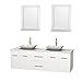 Wyndham Collection Centra 72 inch Double Bathroom Vanity in Matte White, White Carrera Marble Countertop, Avalon White Carrera Marble Sinks, and 24 inch Mirrors
