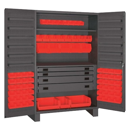 Toolschest.com|Toolschest.com. Durham JCBDLP724RDR-1795 14 Gauge Flush Style 12 Door Shelves Lockable Cabinet with 72 Red Hook on Bins & Adjustable Shelf & 4 Drawers, Gray - 48 in.