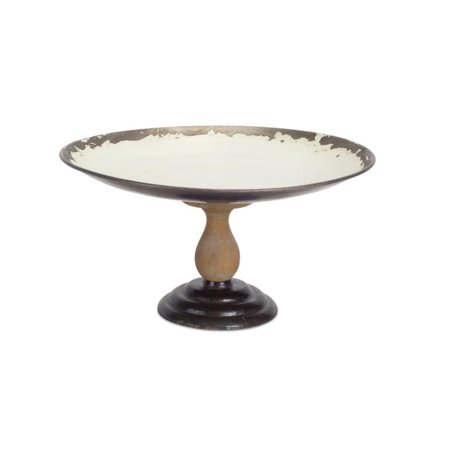 Pack of 2 Handsomely Weathered Metal Serving Trays On Wood Pedestals 7"