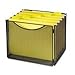 - Portable file box with integrated handles. Open top for letter-size hanging files.