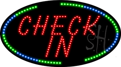 The Sign Store L100-7993 Check in Animated LED Sign - Blue, Red & Green - 15 x 27 x 1 in.
