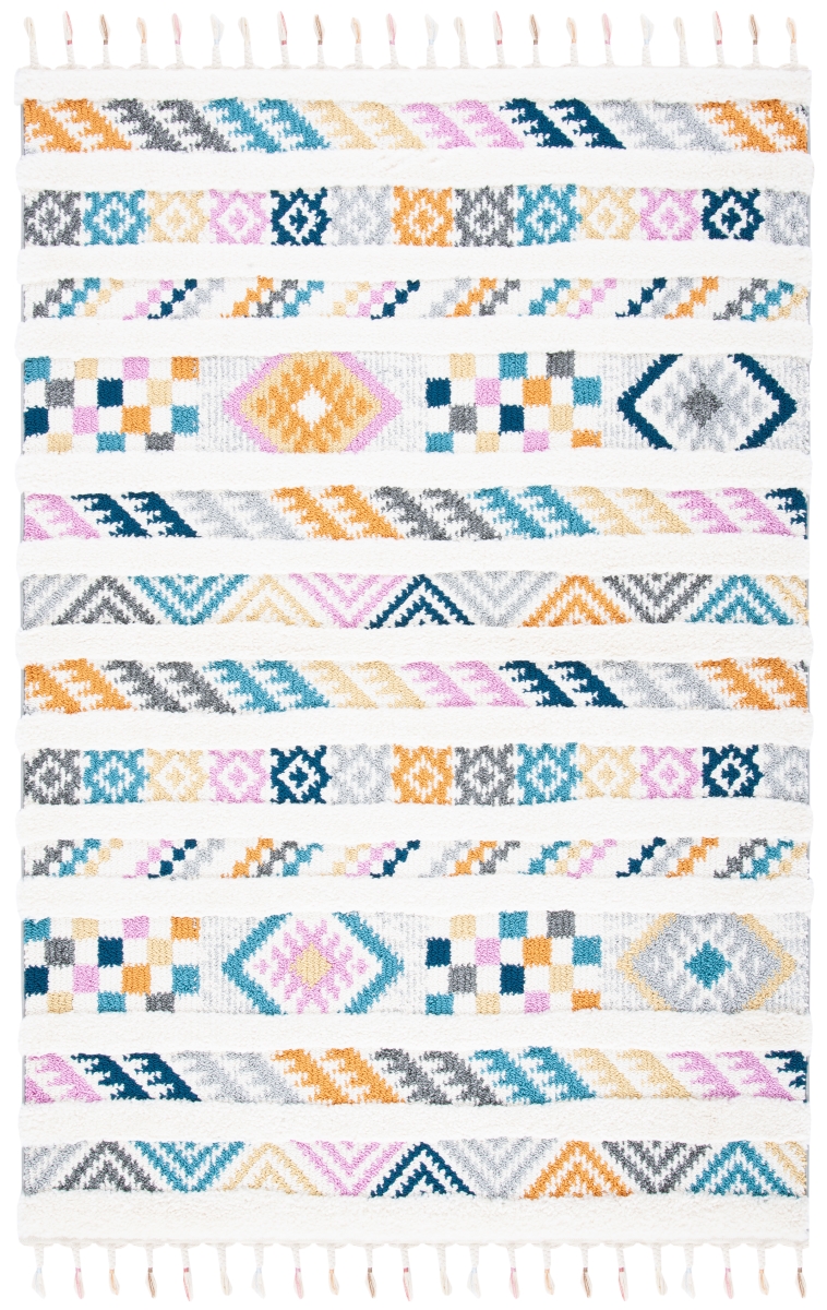 Safavieh MFG110A-5 5 ft.-3 in. x 7 ft.-6 in. Moroccan Fringe Shag Bohemian & Global Rectangle Rug, Ivory & Blue