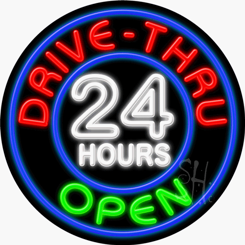 The Sign Store N102-1006 Drive Thru Open 24 Hours Neon Sign, Multicolor - 26 x 26 x 3 in.