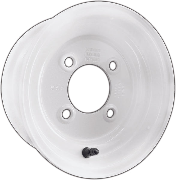 SAFETY WARNING: For information on tire care, safety, maintenance, mounting, manufacturers warranty and other information consult tire manufacturers publication(s) and/or website(s) for complete tire information. The tires used for your application must have a load index and speed rating equal to or greater than the tires fitted as original equipment..<br> White steel wheels.<br> Wheels use standard conical/tapered lug nuts.<br> Includes replacement valve stem.<br> Load capacity: 1300lbs.