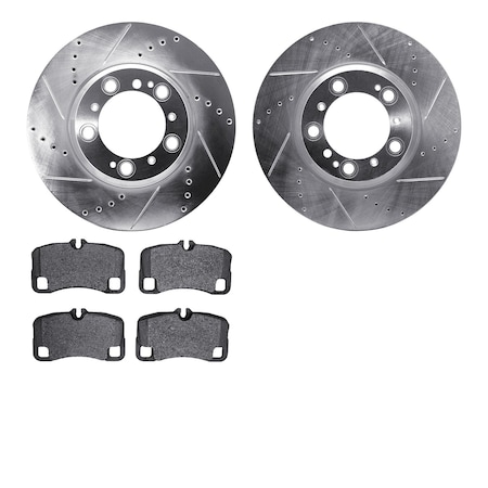Dynamic Friction Company Rear Brake Rotors-Drilled and Slotted-Silver with 5000 Advanced Brake Pads 7502-02016