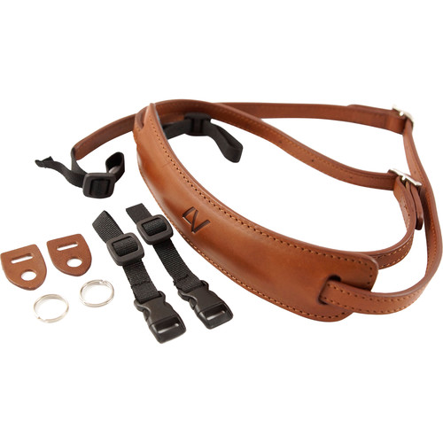 4V Design Lusso Tuscany Leather Medium Handmade Leather Camera Strap w/Universal Fit Kit, Brown/Brown (2MP01BVV2323)