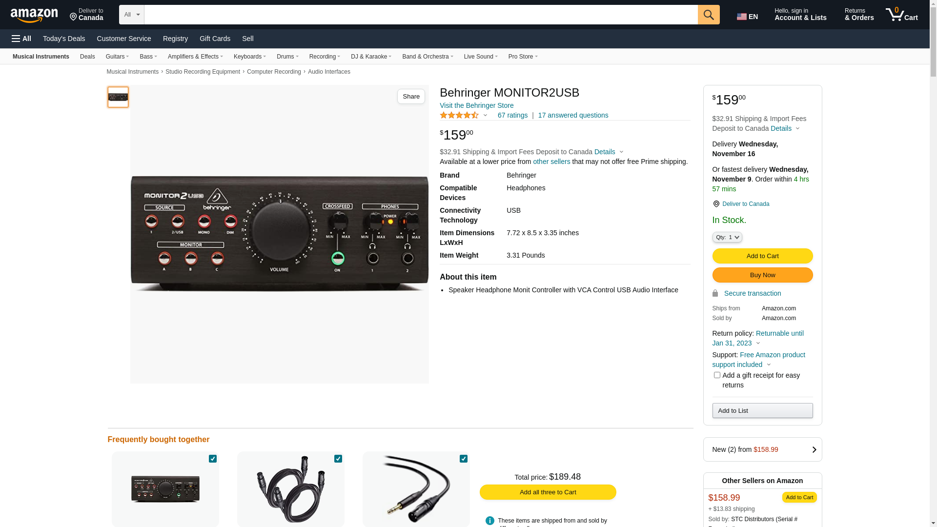 ![]() zzounds.com | BEHMONITOR2USB | 1 | 1 | 1 @ $159.99 | |