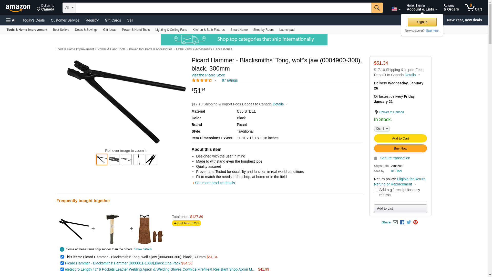 Picard Hammer - Blacksmiths' Tong, wolf's jaw (0004900-300), black, 300mm