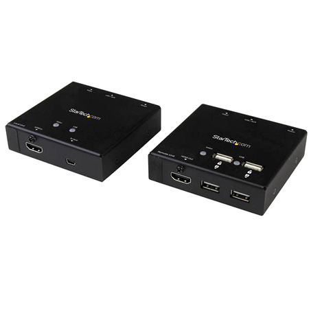 This HDMI extender kit lets you transmit your?1080p HD video source?to your remote HDMI?display at distance of up to 165 ft. away (50 m) using shielded CAT6 cabling. The extender features a built-in?4-port USB 2.0 hub that also lets you connect four remote USB peripheral devices at your display location.</p><p><strong>Crystal-clear picture quality</strong><br />Using this HDMI extender, you can maintain the quality of?your high-definition video signal along with the?accompanying 7.1 digital audio, even at 165 feet away from your source device. The extender supports?resolutions up to 1920x1200 or 1080p -?perfect?for dazzling your audience in remote digital-signage applications in hospitals?or at shopping centers.</p><p><strong>Hassle-free remote USB integration</strong><br />The built-in 4-port USB 2.0 hub lets you remotely connect, access or control up to four USB devices located at your remote display -?great for?flash drives, printers, scanners, external hard drives and?I/O devices.?Remote USB extension also enables you to remotely?control your source?device, which is ideal?for adding touchscreen interfaces at your display in market or POS kiosks.</p><p><strong>Easy installation and setup</strong><br />For hassle-free?setup?the HDMI extender offers?easy plug-and-play installation with no?additional software or drivers required. Plus, the extender passes the?EDID information included in?your HDMI?signal,?and automatically adjusts video equalization?ensuring you won?t have to configure it manually. Mounting hardware is also included, for a tidy and professional installation.</p><p>Note: To maximize performance this extender requires shielded CAT6 cable. When using unshielded CAT6 cable the maximum distance is reduced to 30m. When using CAT5 cable the maximum distance is reduced to 15m.??</p><p>The ST121USBHD is backed by a 2-year StarTech.com warranty and free lifetime technical support.</p>