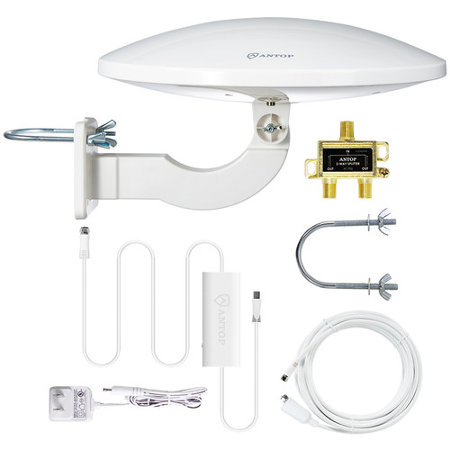 Outdoor TV Antenna for Multiple TVs, ANTOP UFO Amplified Rooftop/Attic/RV/Marine HDTV Antenna 65 Miles Omni Directional Extremely High Reception with 33ft Coaxial Cable and Signal Splitter for 2 TVs