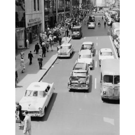 USA New York City traffic on 42nd Street looking West from Park Avenue Poster Print