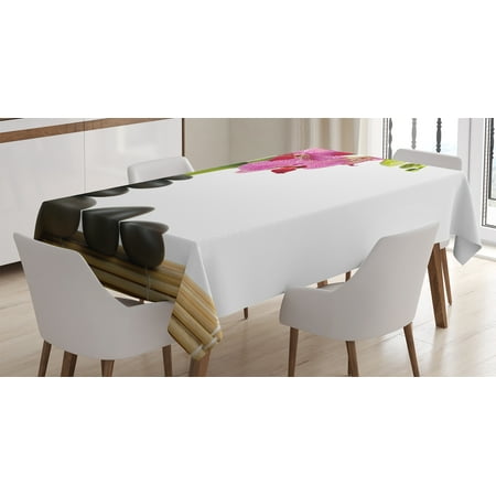 Spa Decor Tablecloth, Beautiful Pink Orchid with Bamboos and Black Hot Stone Massage Image, Rectangular Table Cover for Dining Room Kitchen, 60 X 90 Inches, Pink Green and Black, by Ambesonne