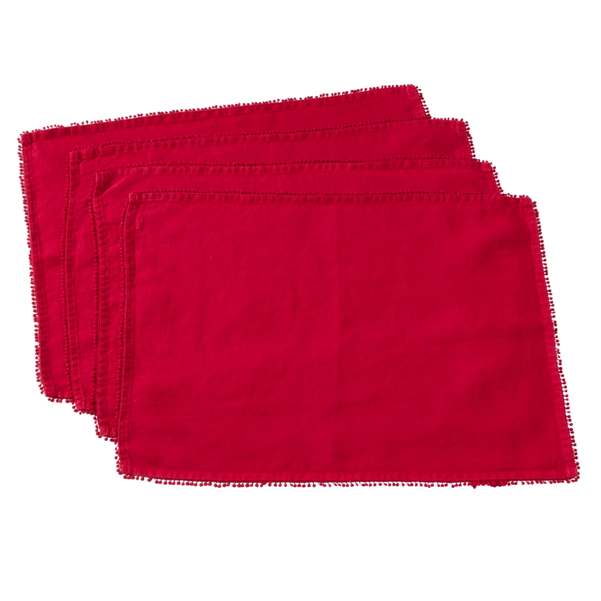 Red Pompom Design Placemat - 14" x 20" Oblong, 4 Ct.