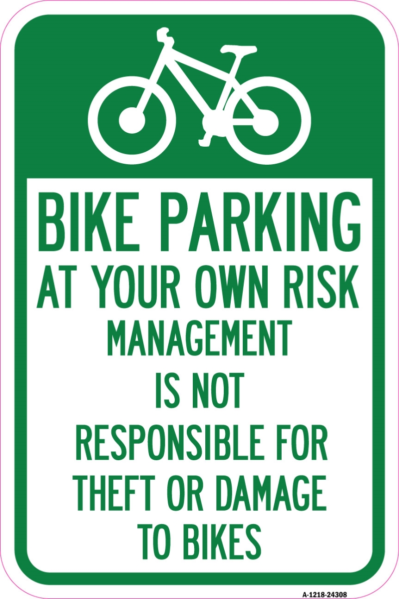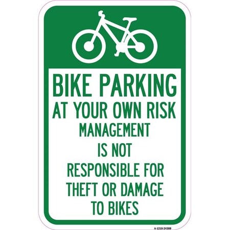Bike Parking at Your Own Risk, Management is Not Responsible for Theft or Damage to Bikes | 12" X 18" Heavy-Gauge Aluminum Rust Proof Parking Sign | Protect Your Business | Made in The USA