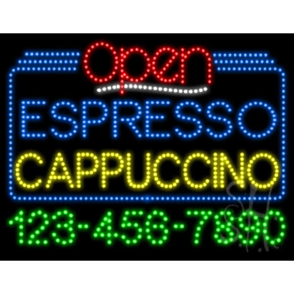 Everything Neon L100-7094 24 x 31 x 1 in. Espresso Cappuccino Open with Phone Number Animated LED Sign - Yellow, Red