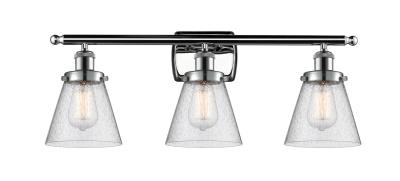 INNOVATIONS LIGHTING 916-3W-PC-G64 BALLSTON SMALL CONE 3 LIGHT 26 INCH SEEDY GLASS VANITY LIGHT, POLISHED CHROME,...