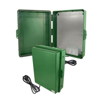 Altelix Green NEMA Enclosure 17x14x6 (11.5" x 9" x 4" Inside Space) Polycarbonate + ABS Weatherproof with Aluminum Equipment Mounting Plate, Pre-Wired 120 VAC Outlets, 5 Foot Power Cord