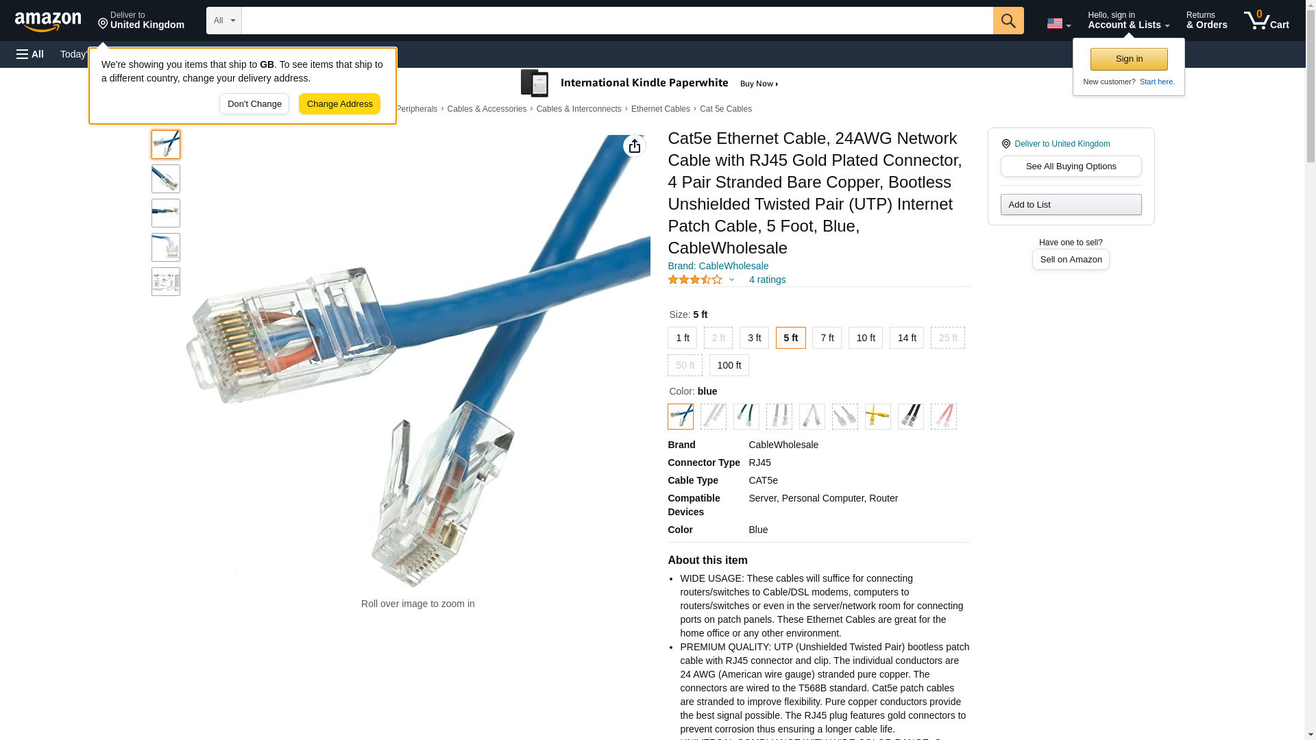 | Feature | CAT5E, UTP, Bootless, 350MHz, Blue, 5 ft |