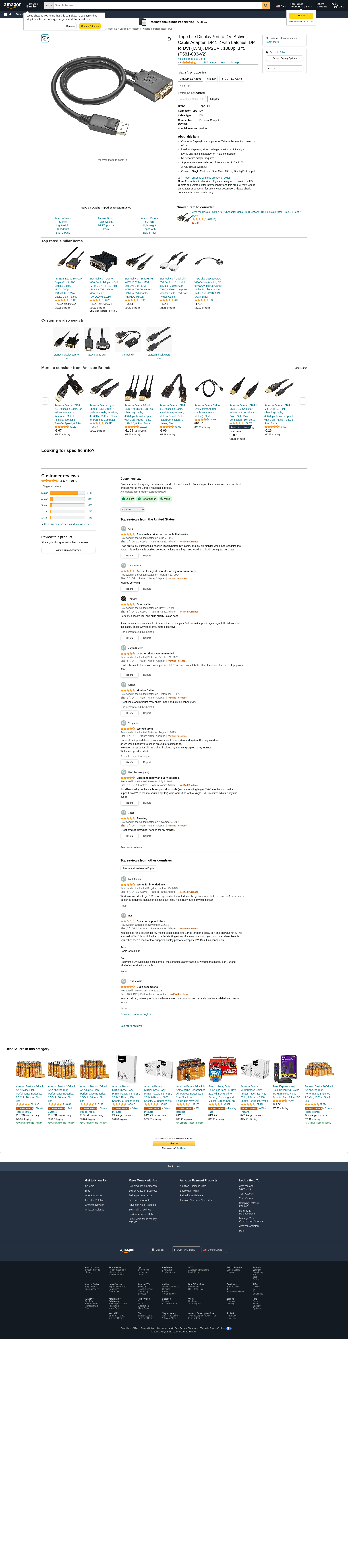 Tripp Lite DisplayPort to DVI Active Cable Adapter, DP 1.2 with Latches, DP to DVI (M/M), DP2DVI, 1080p, 3 ft. (P581-003-V2)