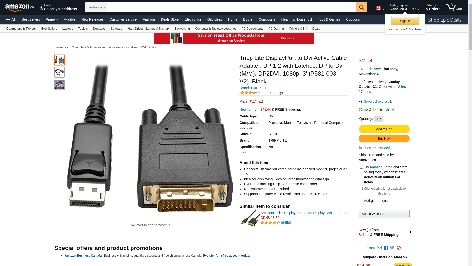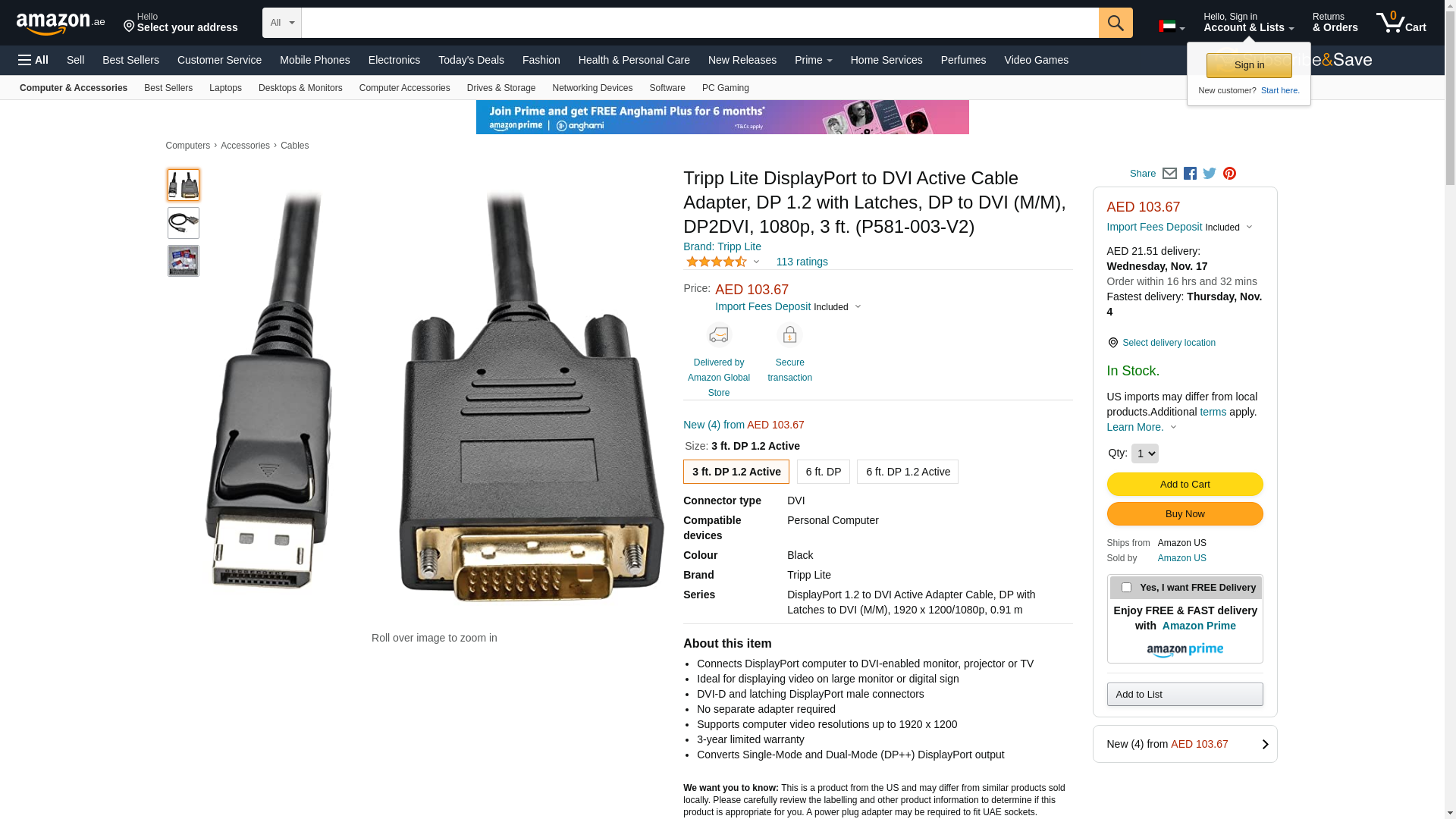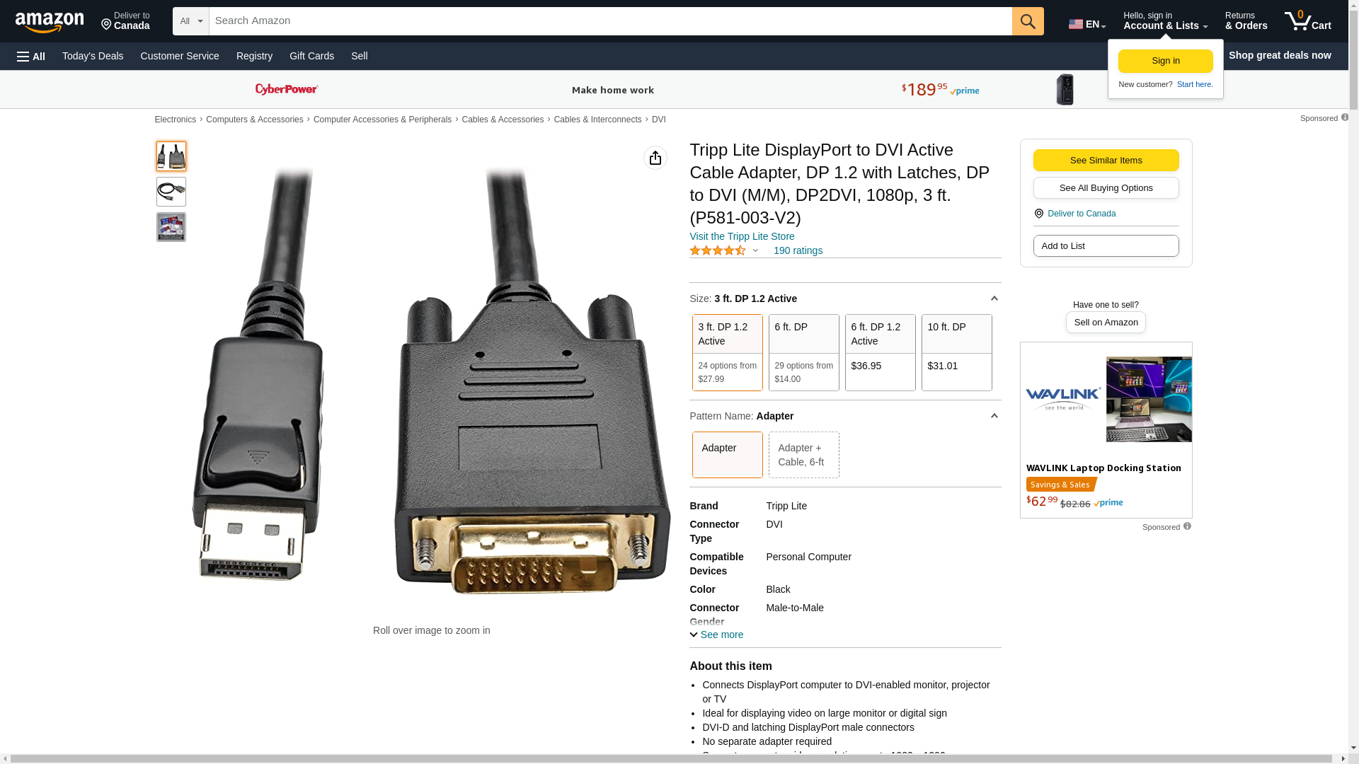 | Feature | Connects DisplayPort computer to DVI-enabled monitor, projector or TV |