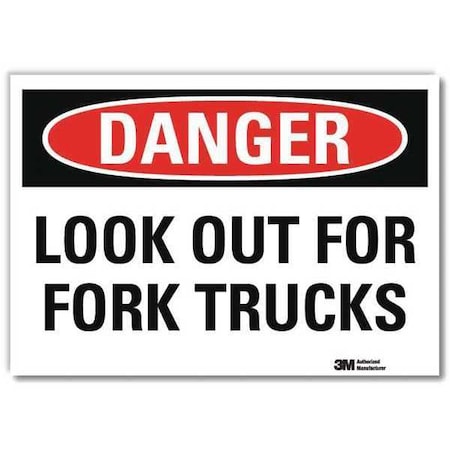 Danger Sign, Horizontal Rectangle, Number of Printed Sides 1, English, Sign Format Traditional OSHA, Sign Legend Look Out For Fork Trucks, Sign Legend Background Color White, Sign Legend Style Text