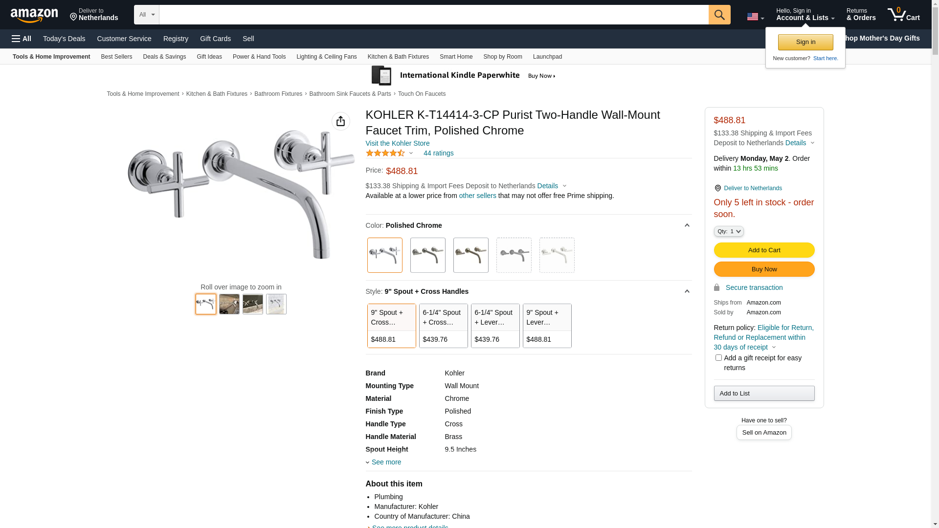 ![]() standardplumbing.com | K-T14414-3-CP | 1 | -2 | 1 | 1 @ $523.05 |