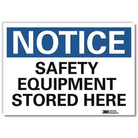 Notice Sign, Horizontal Rectangle, Number of Printed Sides 1, English, Sign Legend Safety Equipment Stored Here, Sign Legend Background Color White, Sign Legend Style Text